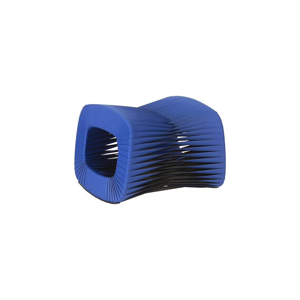 Enjoy the Seat Belt Ottoman - Blue - Black in your home today! The Seat Belt Blue Ottoman is one of many offerings in this contemporary seating collection by award-winning Thai designer Nuttapong Charoenkitivarakorn. The design was inspired by the intertwining spools of fabric seen when visiting a seat belt factory. Nuttapongs striking chairs are easily recognizable by the braided backside and stiletto profile. The straps are woven on a frame made of wood that is reinforced with metal. There are monochromatic and two-toned versions, each of which are available in many colors. We offer custom color matching for quantities of 16 or more. All of these reflect the ethos that the Phillips Collection personifies: modern organic.