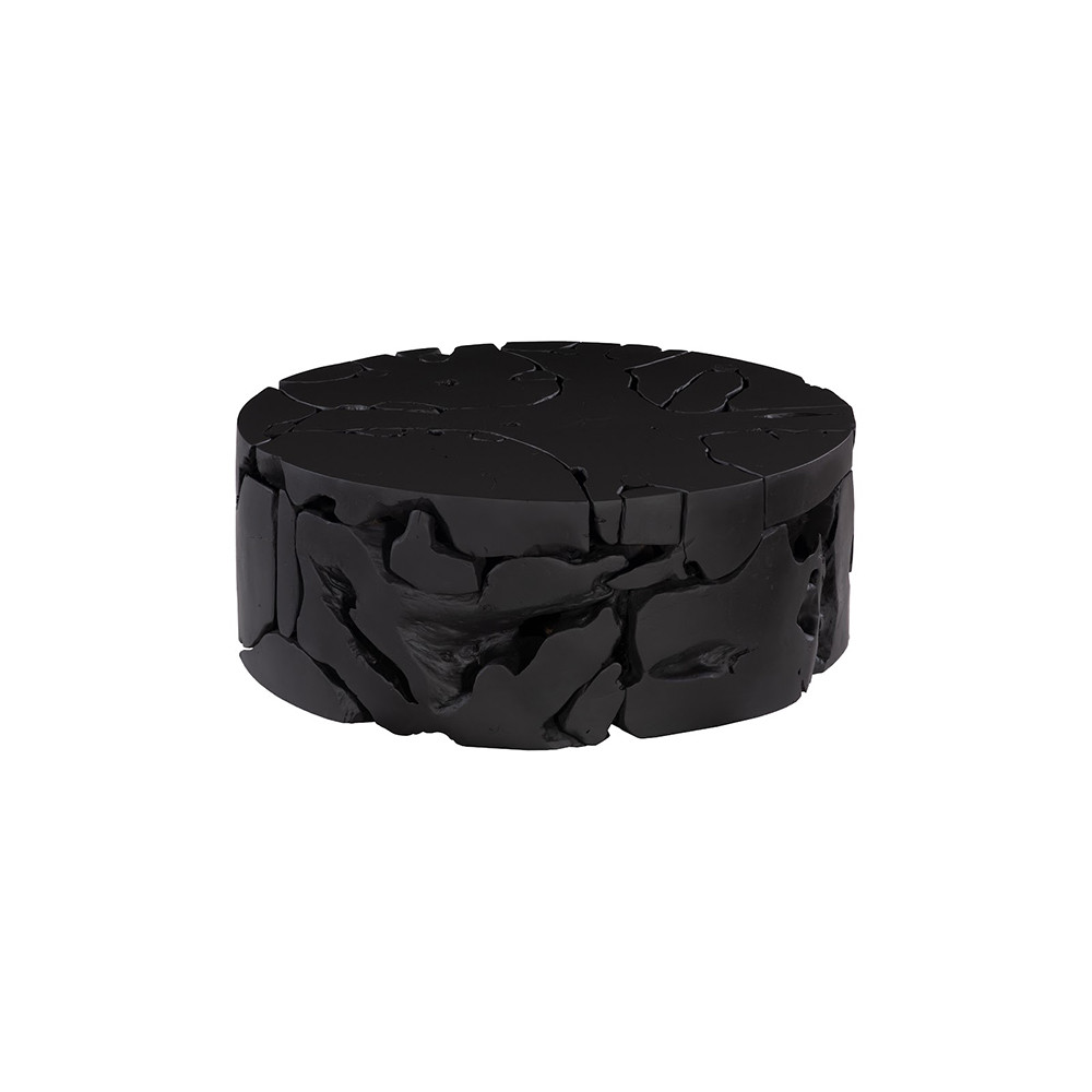 Enjoy the Teak Chunk Round Coffee Table - Black in your home today! With exquisite craftsmanship, we have rescued the scrap pieces of teak wood that are hand assembled to create the Teak Chunk Round Coffee Table from being one of Natures finest castaways. Though the shape is simple, the complexity of the parts that make up the whole illustrates the talent of our craftspeople. Unorthodox designs call for unorthodox finishes; the natural wood grain shines through the dark, charcoal-hued finish to a magnificent degree, truly making this table a unique design statement that will demand attention within your space. Disclaimer: This piece is crafted from natural solid wood. Color and character of wood grain may vary, adding a unique character to your piece.