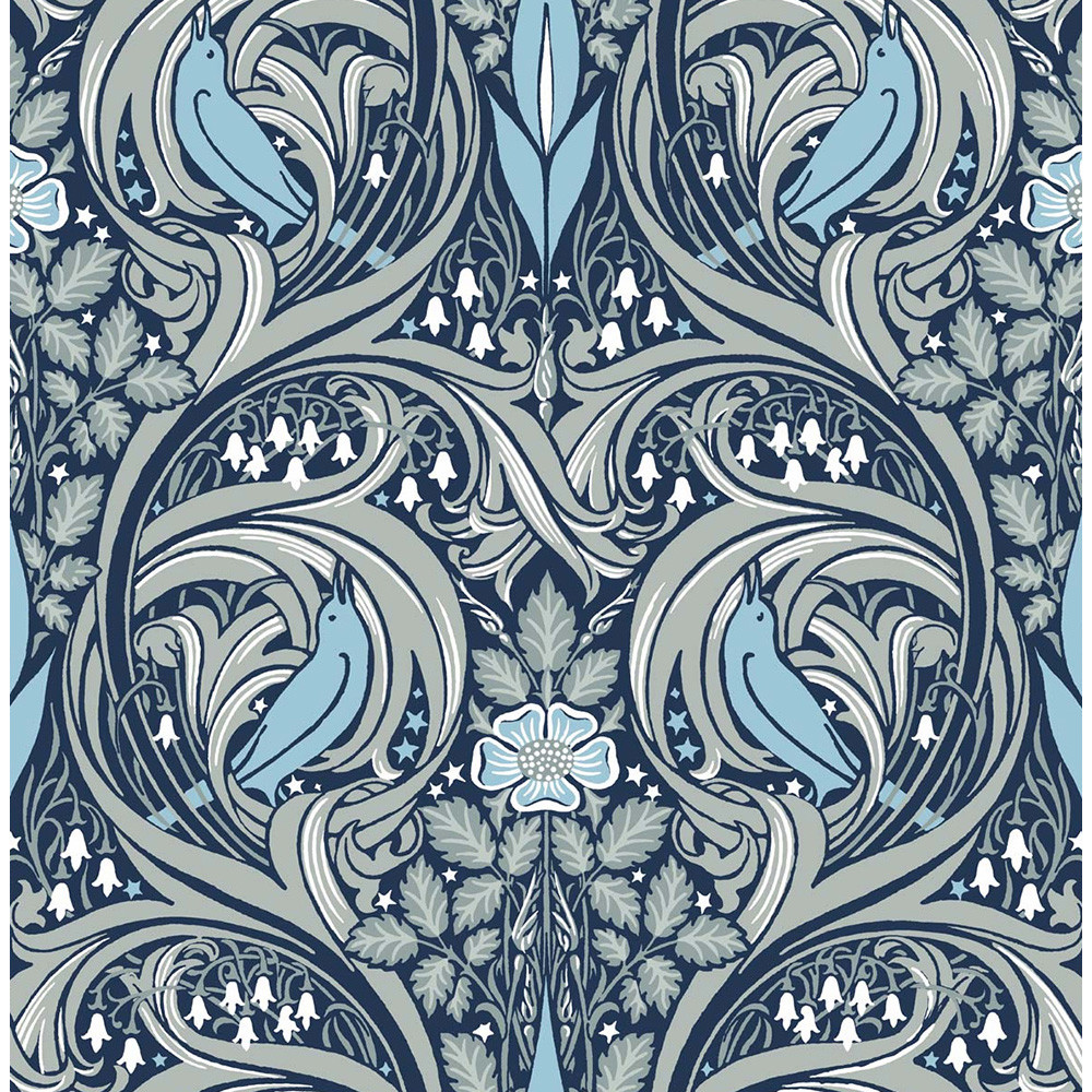 Enjoy the Seabrook Designs Bird Ogee Prepasted - Navy & Sky Blue in your home today!