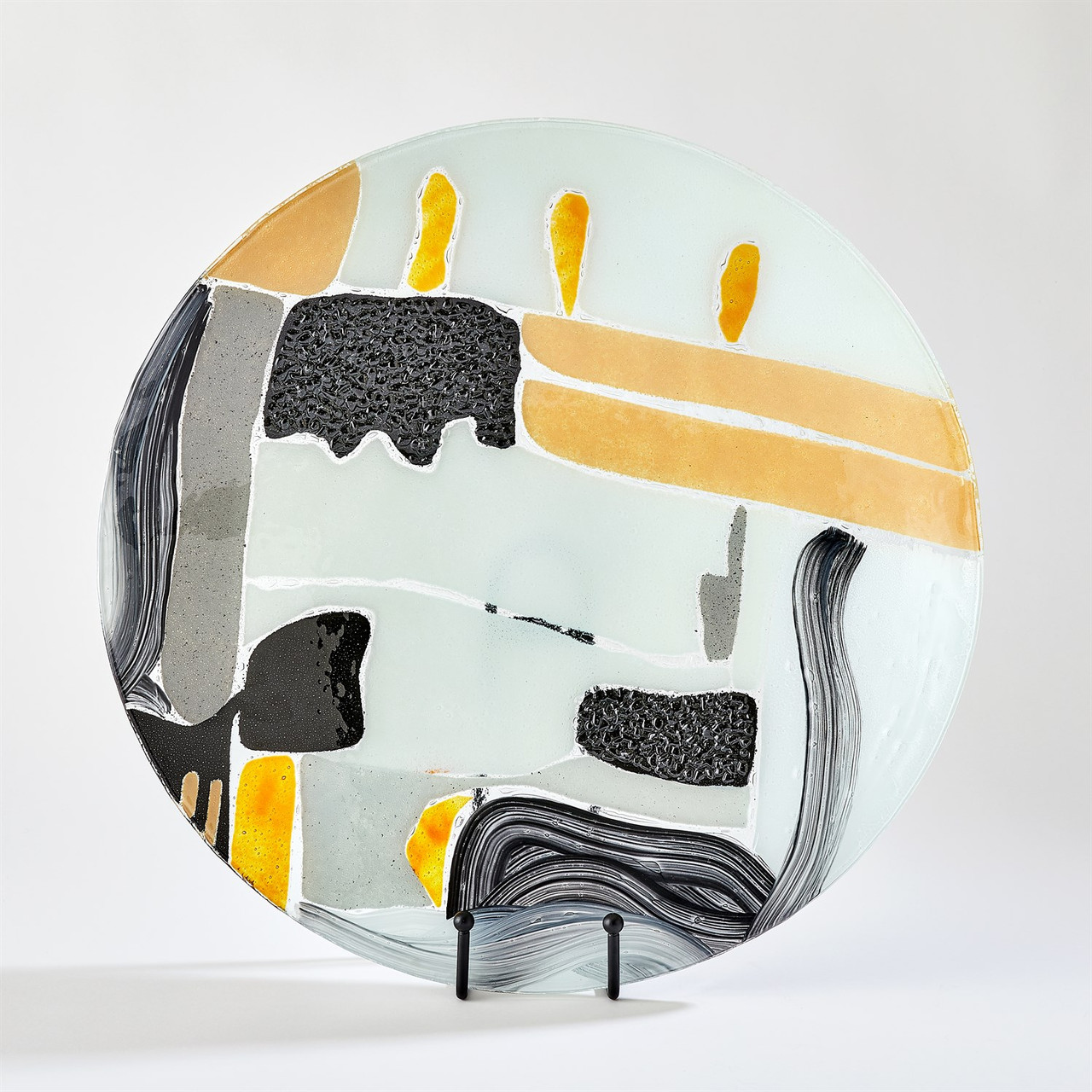 Enjoy the Cashmere Glass Charger - Lg in your home today! The Cashmere Glass Collection is a testament to the intricate artistry of Portuguese artisans. The process begins with a flat piece of clear glass, which is carefully cut into the shape it will become. The number of colors in the collection determines the number of templates used to layer the sand onto the glass. Artisans start by placing the first template onto the glass and sifting sand through it to fill the template with a specific color. With precision, the template is then lifted and removed. Another template is placed onto the clear glass to sift a different color of sand, creating the next shape. This process is repeated until the flat glass is nearly covered with different colors of sand. Next, artisans lay a clean piece of clear glass on top, creating a sandwich, and carefully transport it to the kiln where it rests upon the shape it will become. In the kiln, it undergoes baking at an incredibly high temperature, fusing the two layers of glass together to create exquisite abstract designs. Plate stands are sold separately from chargers.