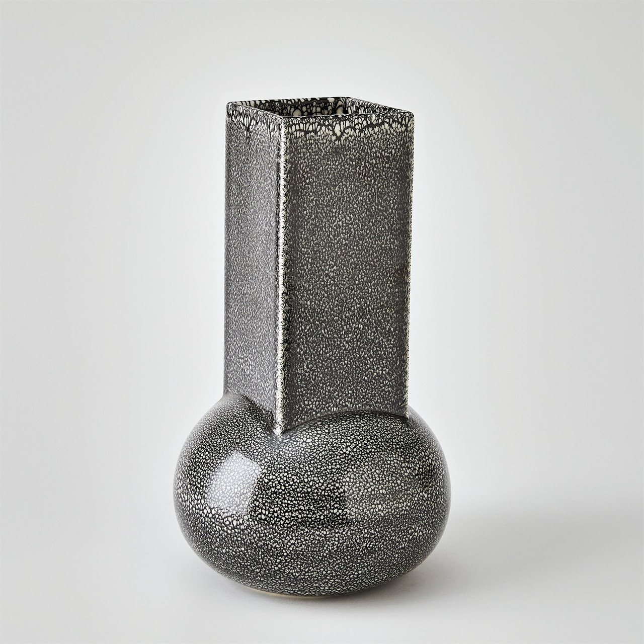 Enjoy the Crocus Vase - Reactive Black - Lg in your home today! Beautifully crafted from Portuguese ceramic, the Crocus Vases feature a hand-applied reactive glaze. Each piece displays unique variations, celebrating the beauty of artisanal craftsmanship.