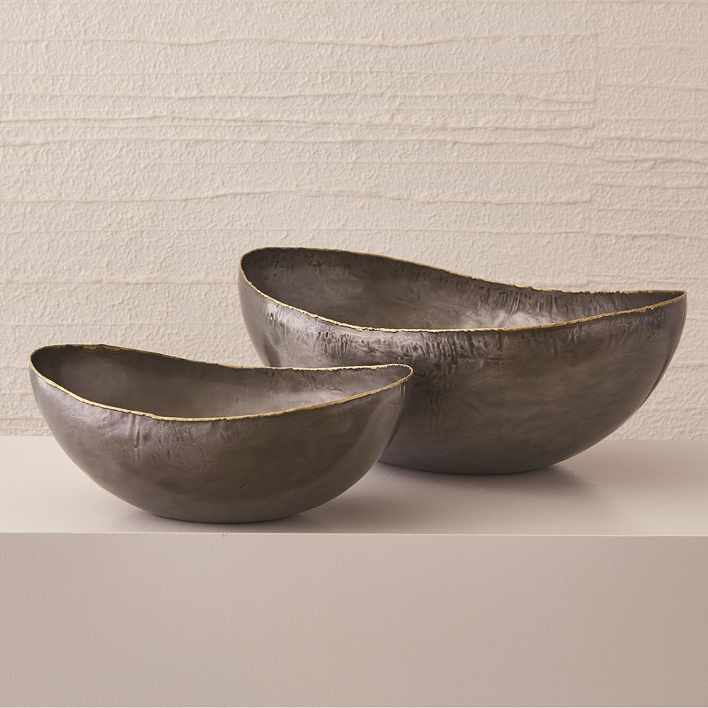 Enjoy the Laforge Oval Bowl - Sm in your home today! Brutalist iron centerpiece bowl with braised brass accents on the edges. The bowl is sealed with a matte lacquer to inhibit oxidation.
