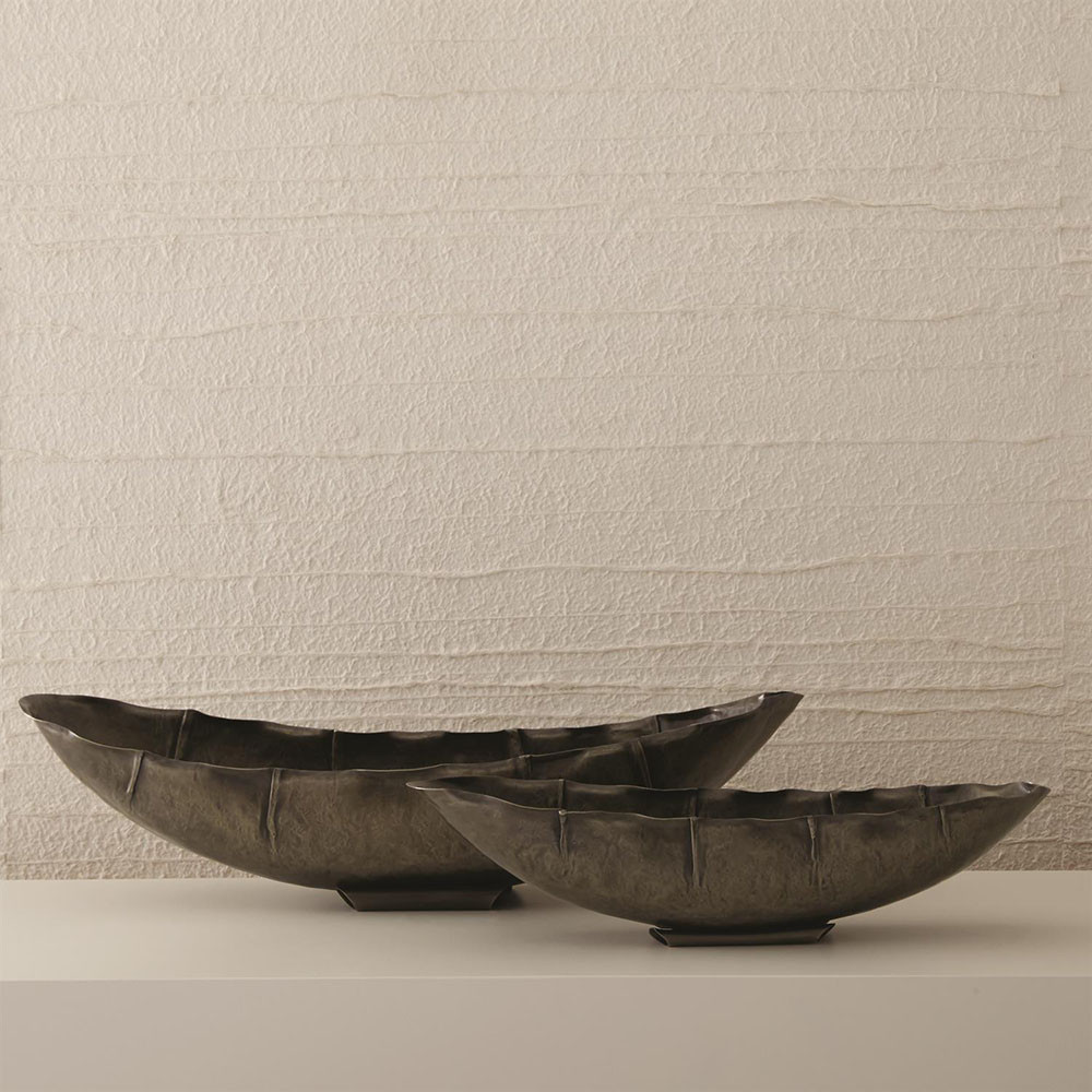 Enjoy the Larkin Bowl - Antique Nickel - Lg in your home today! Crafted from brass with an antique nickel finish, the Larkin Bowl is oblong in shape. Available in two sizes, this bowl is the perfect centerpiece for any sized table.
