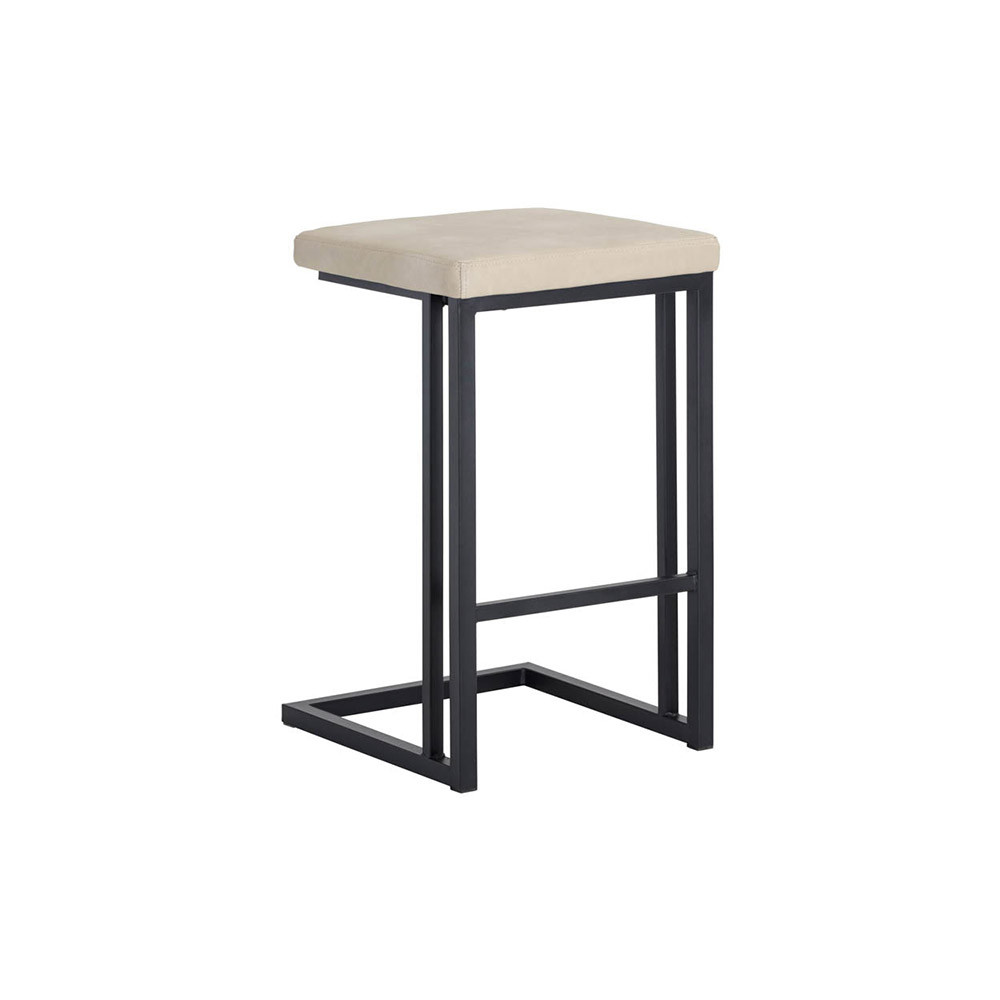 Enjoy the Boone Counter Stool - Black - Bravo Cream - Set Of 2 in your home today! A modern industrial stool featuring a backless seat in onyx faux leather and a cantilever frame with footrest in grey powder-coated steel. Designed for residential and commercial environments. Suitable for various dining, kitchen and bar spaces of all sizes. Handle With Care: This design has been crafted with faux leather. Faux leather is manufactured to reflect the natural characteristics of leather; as such, colour variations, markings wrinkles, grooves, and light scratches are appreciated characteristics. No two pieces will be alike. Visit our Product Care page for more information on how to ensure the lasting beauty of this piece.