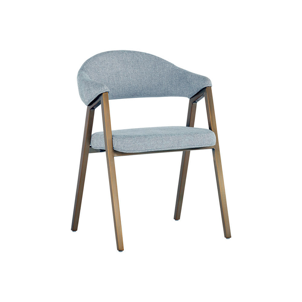 Enjoy the Burgos Dining Armchair - Belfast Heather Grey in your home today! This modern chair will charm guests. Features a curved seatback with channel tufting on the exterior in belfast heather grey fabric, complemented with a brushed gold stainless steel frame.