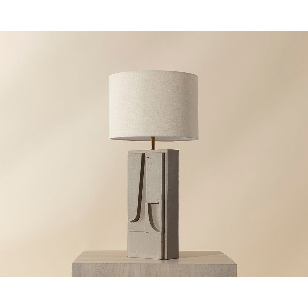 Enjoy the Dirsan Table Lamp - Taupe in your home today! Abstract shapes carved into the base of the Dirsan Table Lamp give the design an artistic flair. Crafted from casted aluminum, this piece retains its sculptural look thanks to its taupe plaster finish.