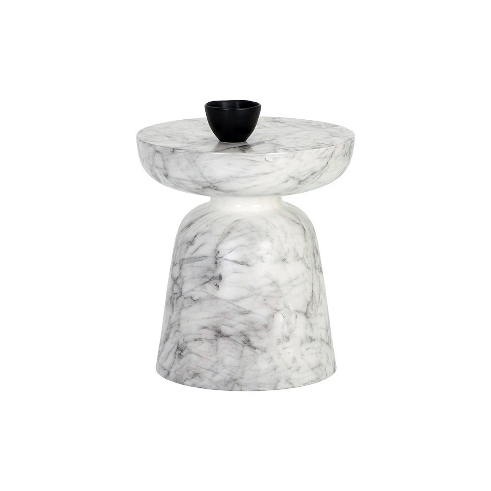 Enjoy the Lucida End Table - Marble Look - White in your home today! This alluring concrete end table will add depth and excitement to any space. The painted white marble-look finish makes it ideal for contemporary indoor and outdoor placements.