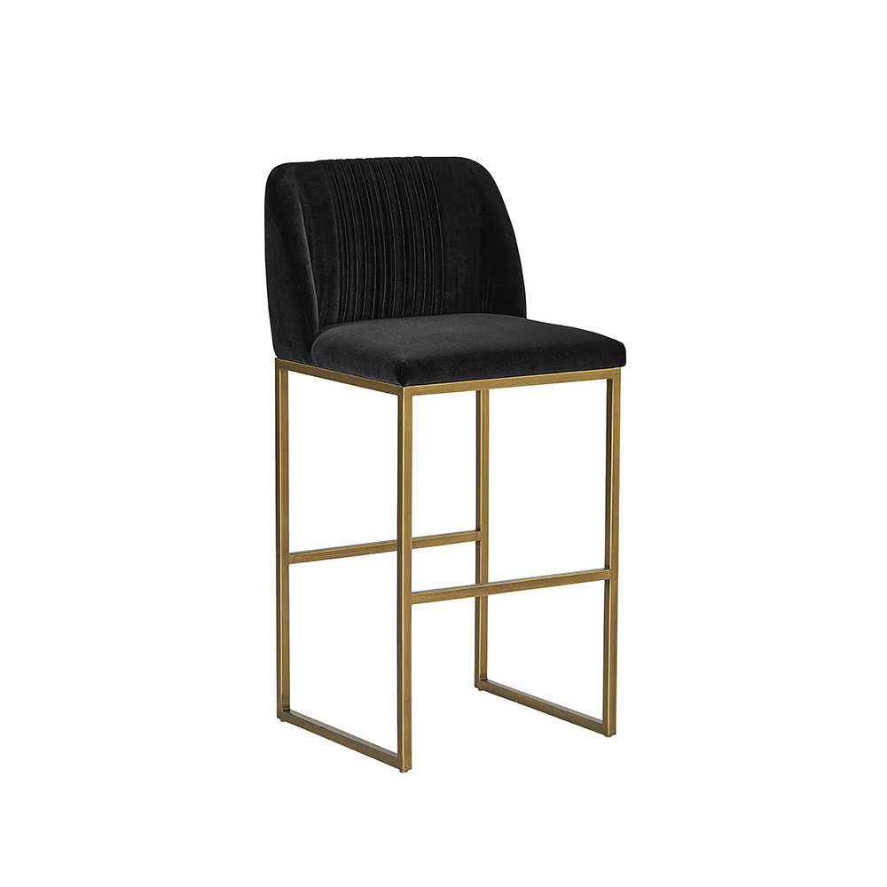 Enjoy the Nevin Barstool - Shadow Grey in your home today! A modern barstool from that offers style and comfort. Features delicate ruching on the rounded seatback and exposed antique brass legs. Stocked in shadow grey fabric. Suitable for various dining, kitchen and bar spaces of all sizes.