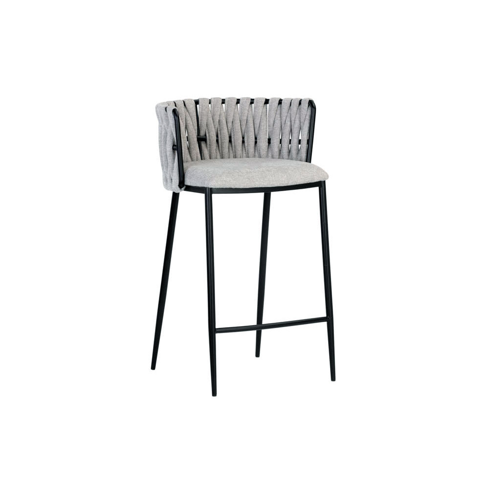 Enjoy the Sarai Counter Stool - Belfast Heather Grey in your home today! Bold and unconventional, this contemporary counter stool features an eye-catching design that will bring drama to any space. Crafted with a unique weaved backrest that is upholstered in our belfast heather grey fabric. Completed with black powder-coated steel frame in a smooth finish.