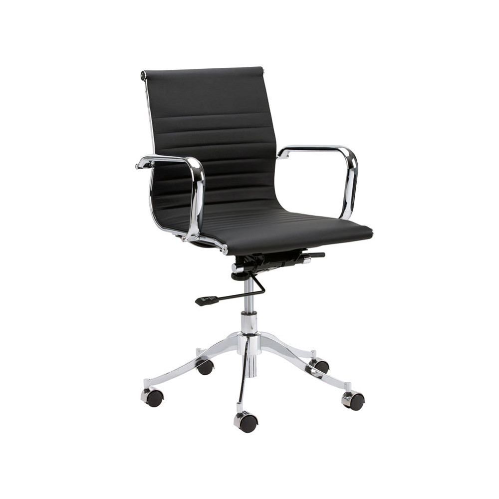 Enjoy the Tyler Office Chair - Onyx in your home today! This stylish and practical office chair is stocked in onyx faux leather on the front and back with a stainless steel frame and legs. Castors allow for mobility. Perfect for office spaces. Handle With Care: This design has been crafted with faux leather. Faux leather is manufactured to reflect the natural characteristics of leather; as such, colour variations, markings, wrinkles, grooves, and light scratches are appreciated characteristics. No two pieces will be alike. Visit our Product Care page for more information on how to ensure the lasting beauty of this piece.